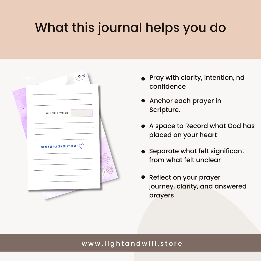 Inside, you’ll find dedicated pages for defining your prayer assignments, writing out your prayers, and pairing each one with Scripture. Each section is designed to help you stay focused, intentional, and connected as you pray.